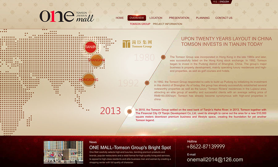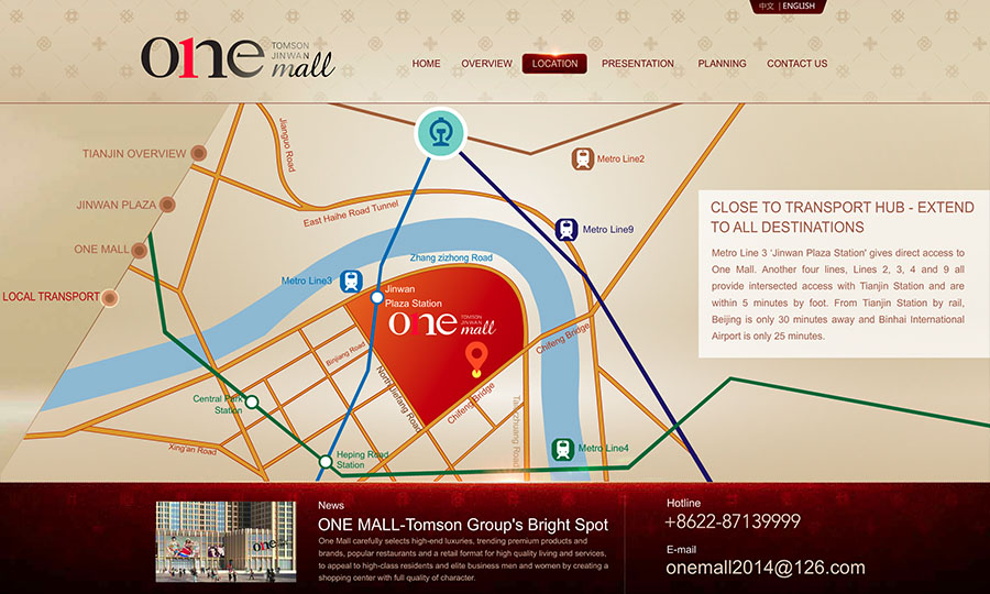 互动视界继银河国际之后津门再添力作——ONE MALL交互招商网站隆重上线(www.onemall-jinwan.com)。